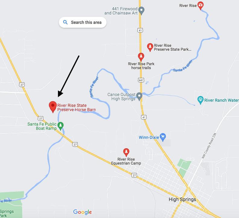 Do not just put in River Rise Preserve State Park, River Rise Park Horse Trails or Equestrian Camp into your GPS as that will not take you to the correct location.